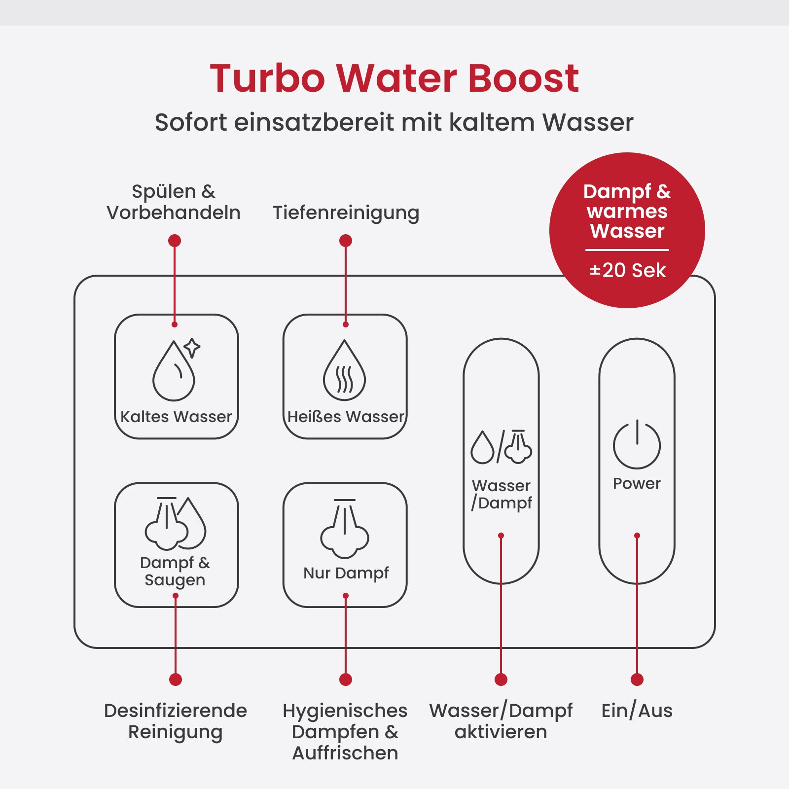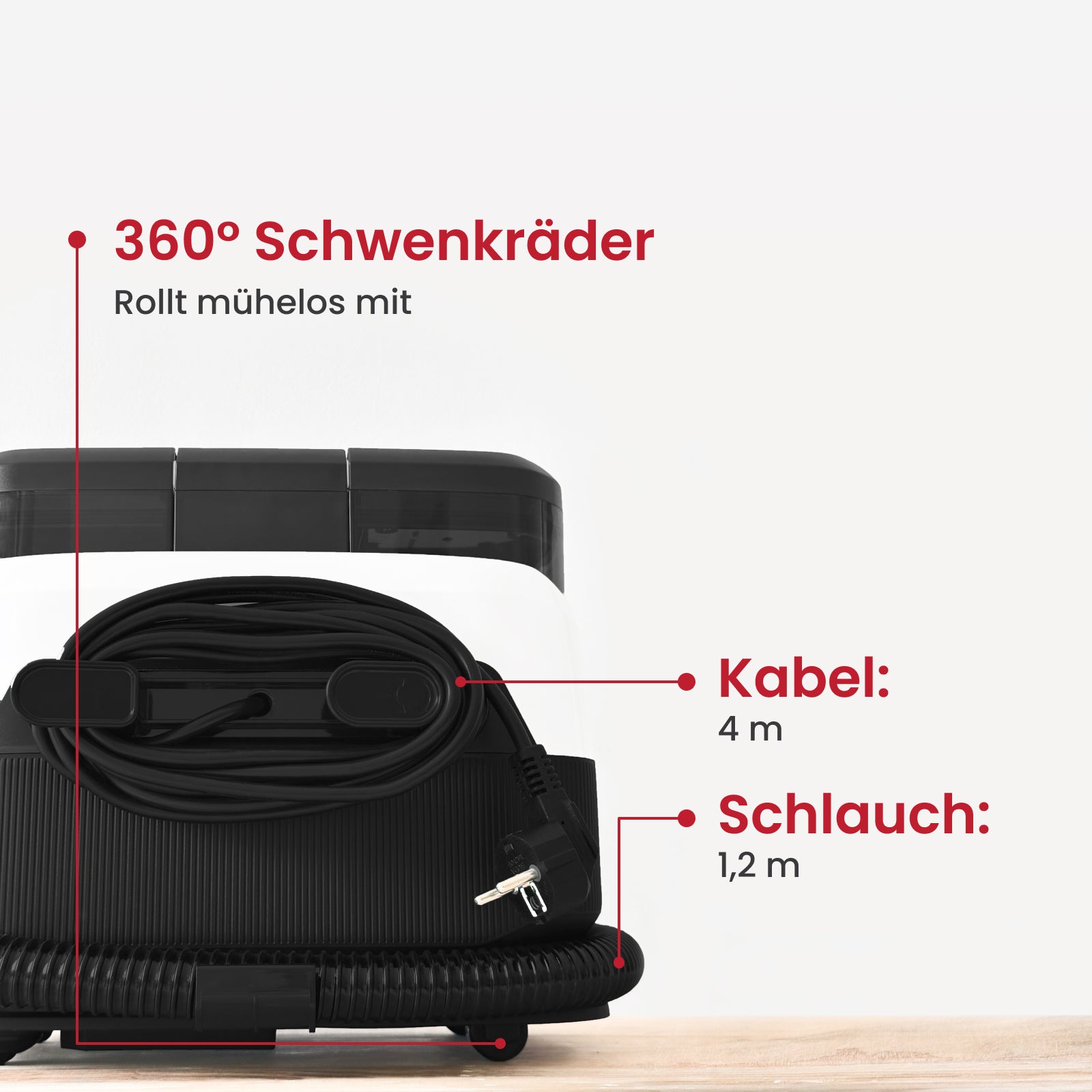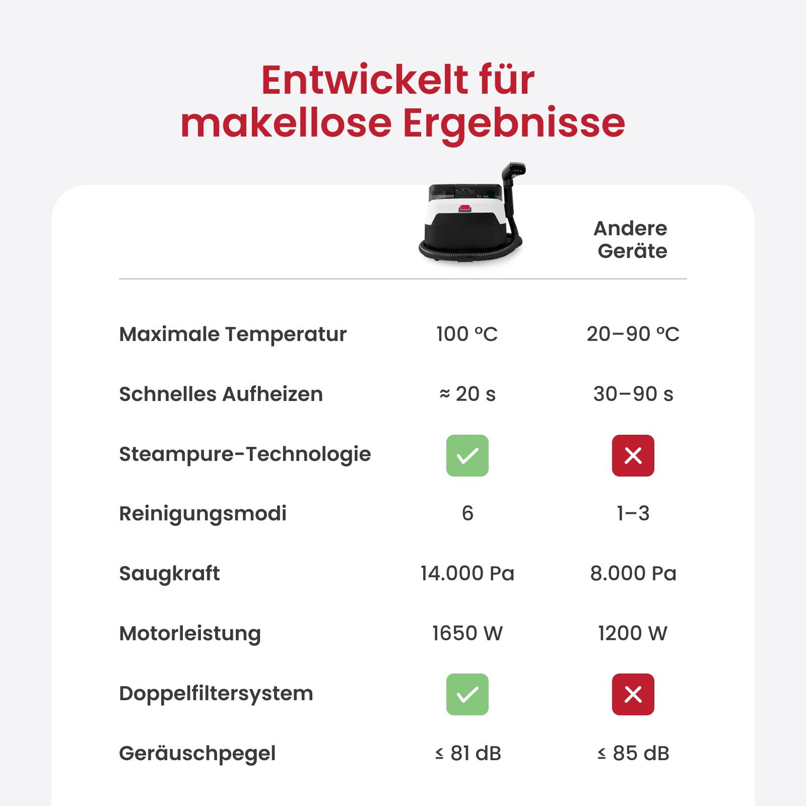 Dank der starken Saugfunktion in Kombination mit Dampf ist die Oberfläche in den meisten Fällen bereits nach wenigen Minuten trocken.