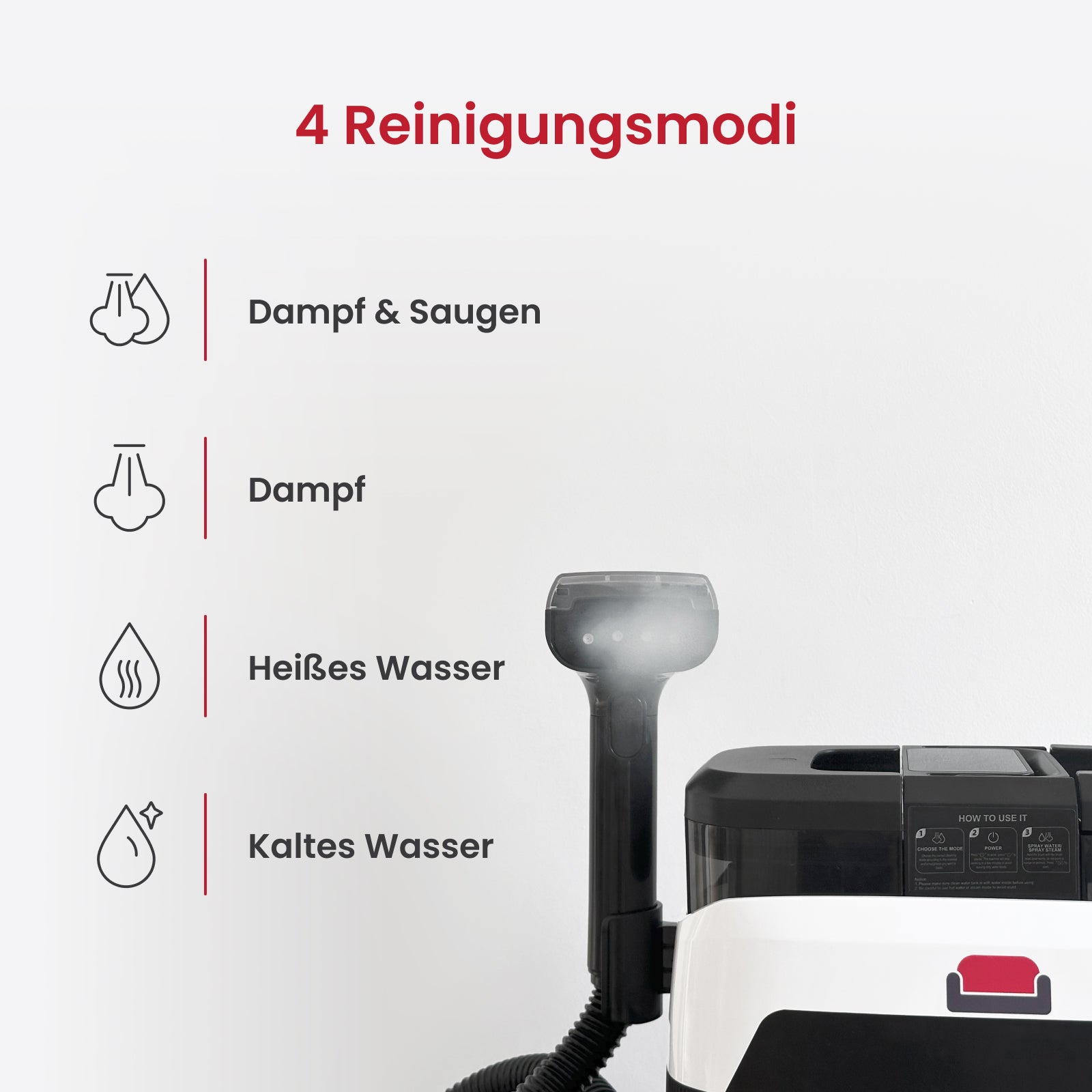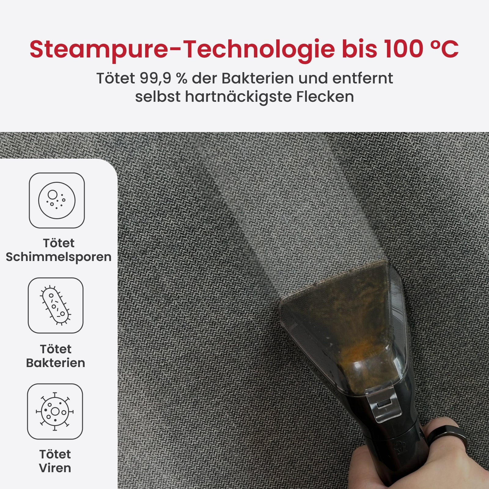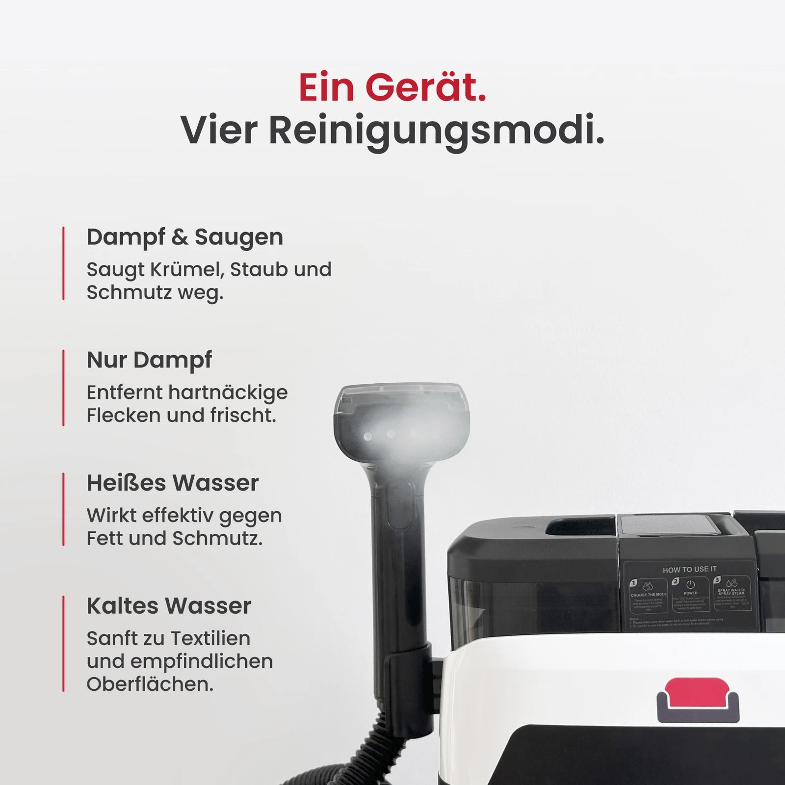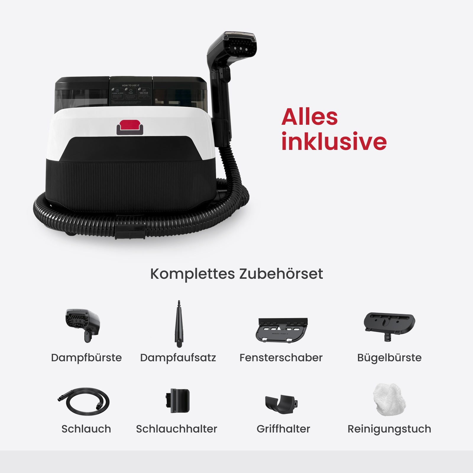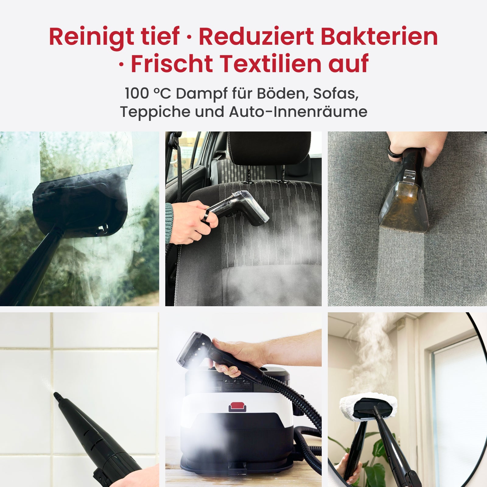 Absolut. Dank der verschiedenen Aufsätze und flexiblen Reinigungsmodi ist der LuxeSteam ideal für Möbel, Auto-Innenräume, Treppenpolster, Teppiche, Fenster und vieles mehr.