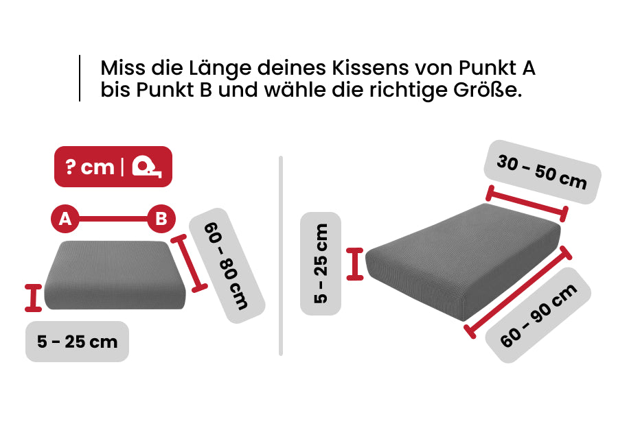 Finde die perfekte Größe für deinen Möbelbezug, indem du einfach den Maßanweisungen auf unserer Produktseite folgst.
