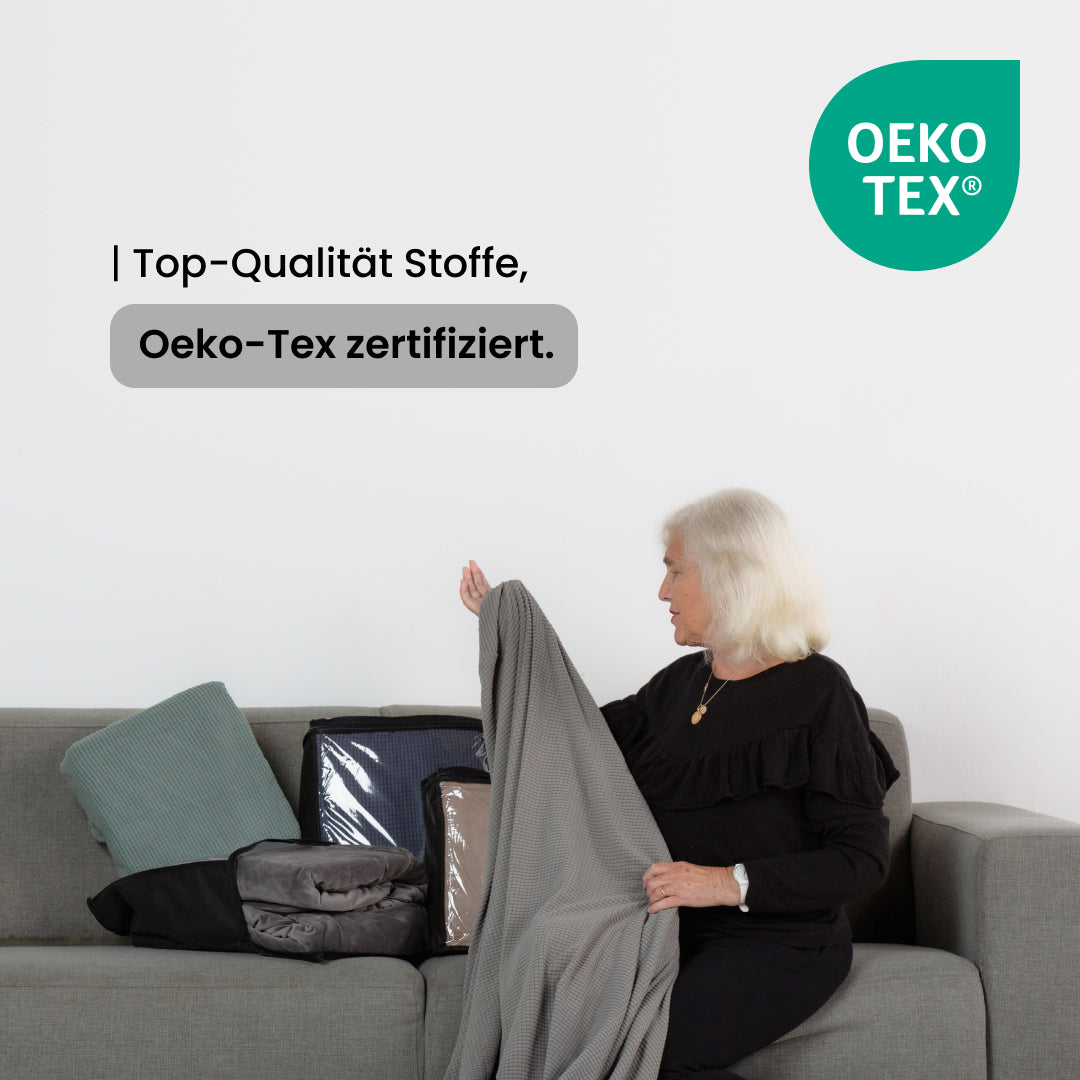 Bei SofaSchutz.de stehen Qualität und Sicherheit an erster Stelle. Unsere Bezüge sind OEKO-TEX® zertifiziert – frei von schädlichen Stoffen und sicher für dich und die Umwelt. Entscheide dich mit gutem Gewissen für Produkte, die sorgfältig auf Langlebigkeit und Komfort geprüft wurden.